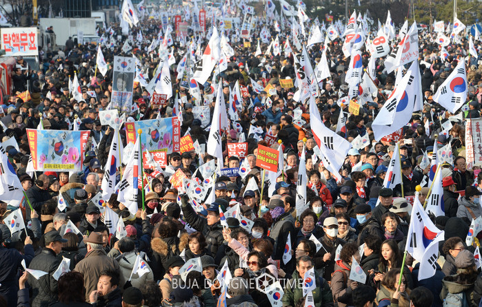 [부자동네타임즈 이장성 기자]14일 강추위 속에서 박근혜 대통령 탄핵을 반대하는 보수단체의 맞불집회가 열렸다.