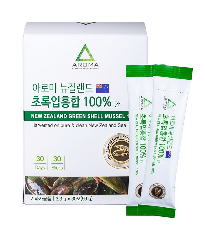 ‘아로마 뉴질랜드 초록입홍합 100% 환’은 뉴질랜드 청정해역에서 자란 초록입홍합만을 사용해 만든 환 형태의 제품이다. 초록입홍합에 함유되어 있는 뮤코다당·단백은 그 자체가 연골 조직을 구성하는 성분이다. 실제로 초록입홍합을 자주 섭취하는 뉴질랜드 해안가 마오리족은 관절염을 앓지 않는 것으로 알려져 있다.