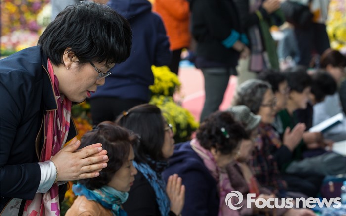 (서울=포커스뉴스) 2016학년도 대학수학능력시험을 하루 앞둔 11일 오후 서울 종로구 조계사에서 수험생 학부모와 불자들이 기도하고 있다.