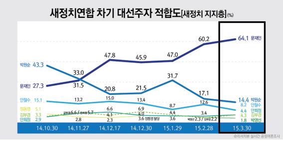 [새정치] 대선주자적합도 “문재인 64.1%(△3.9) vs 박원순 14.4%(▽2.7)”