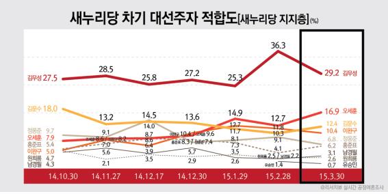 [새누리] 대선주자적합도 “김무성 29.2%(▽7.1) vs 오세훈 16.9%(△4.2)”