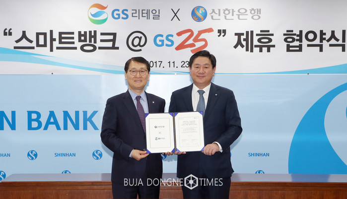 [부자동네타임즈 이현재 기자]신한은행은모바일 통합 채널 슈퍼플랫폼 프로젝트의 일환으로 GS리테일과 새로운 비즈니스모델 발굴을 위한‘스마트뱅크 @GS25’전략적 업무 협약을 체결했다고 23일 밝혔다.