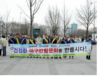 서울시체육시설관리사업소는 잠실야구장의 암표,호객 행위 등 불법행위를 근절하고 건전한 야구 관람문화를 조성하기 위해 송파경찰서, 송파구청, 잠실야구장관리본부와 합동으로 2015 프로 야구 기간 동안 ‘클린캠페인’을 전개하기로 했다.
