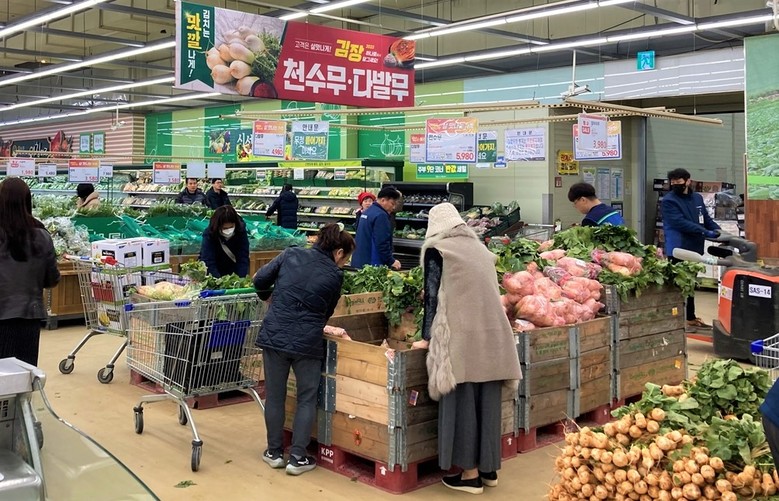 김장철 막바지를 향하는 11월 하순 김장비용은 지난주에 이어 전년보다 낮은 수준에서 안정세가 지속되는 것으로 나타났다.
