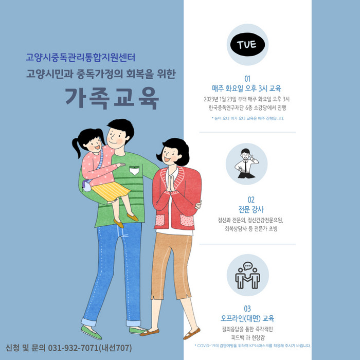 [부자동네타임즈 김인수기자] 고양시중독관리통합지원센터가 중독에 대한 정확한 정보 제공과 가족기능 회복을 위해 가족교육을 진행한다.