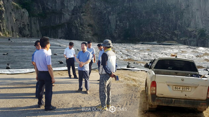 다음날 11일에는 낭산면 석산복구지를 방문해 폐기물 불법매립에 따른 긴급조치 현장을 살폈다. 석산복구지는 복구재로 금지된 지정폐기물을 일반폐기물로 조작, 불법 매립해 주변지역 환경오염과 주민피해가 우려되는 지역으로 환경오염방지 대책마련을 위해 민관협의회가 구성되어 운영되고 있다.