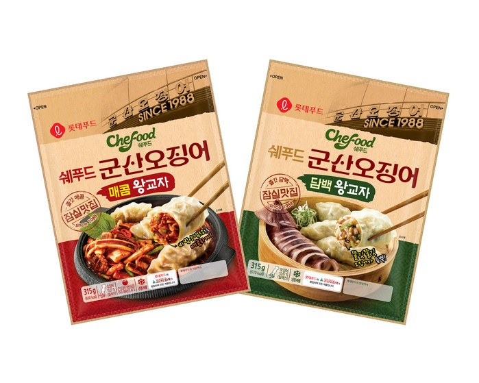 롯데푸드㈜는30년 전통 잠실 유명 맛집인‘군산 오징어’와 협업해 쉐푸드 군산오징어왕교자 2종(매콤, 담백)을 선보인다고 16일 밝혔다. 군산 오징어는 한국인의 입맛에 맞는 오징어 메뉴를 개발해 전국 50개 이상의 매장을 갖춘 유명 맛집이다.