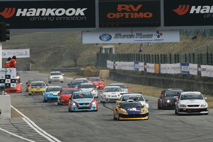 [사진설명] 슈퍼레이스 챔피언십 첫 경기였던 2007년 개막전에서 참가 차량들이 레이스를 시작하고 있다.