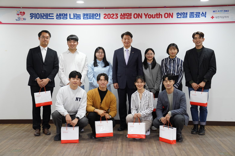 이에 김상진 대한적십자사 서울중앙혈액원장은 5일 서울중앙혈액원(이하 혈액원) 대강당에서 열린 위아레드 생명 나눔 캠페인 ‘2023 생명 ON Youth ON’ 종료식에서 “혼자나 연인들이 헌혈하는 모습은 많이 봤는데, 많은 청년들이 단체로 환하게 웃으며 받는 모습은 참으로 신선했다”며 “저출산으로 인해 헌혈자는 줄어들고, 고령화로 인해 혈액 사용량은 증가하는 상황에서 혈액 수급 불균형을 해소해줘 너무나 감사하다”고 말했다.