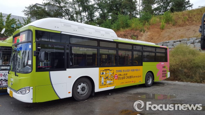 (서울=포커스뉴스) 효성그룹과 전북창조경제혁신센터(이하 전북창조센터) 등이 함께 제작한 탄소섬유소재 압축천연가스(CNG) 용기 장착 시내버스가 전주, 군산, 익산에 보급됐다.