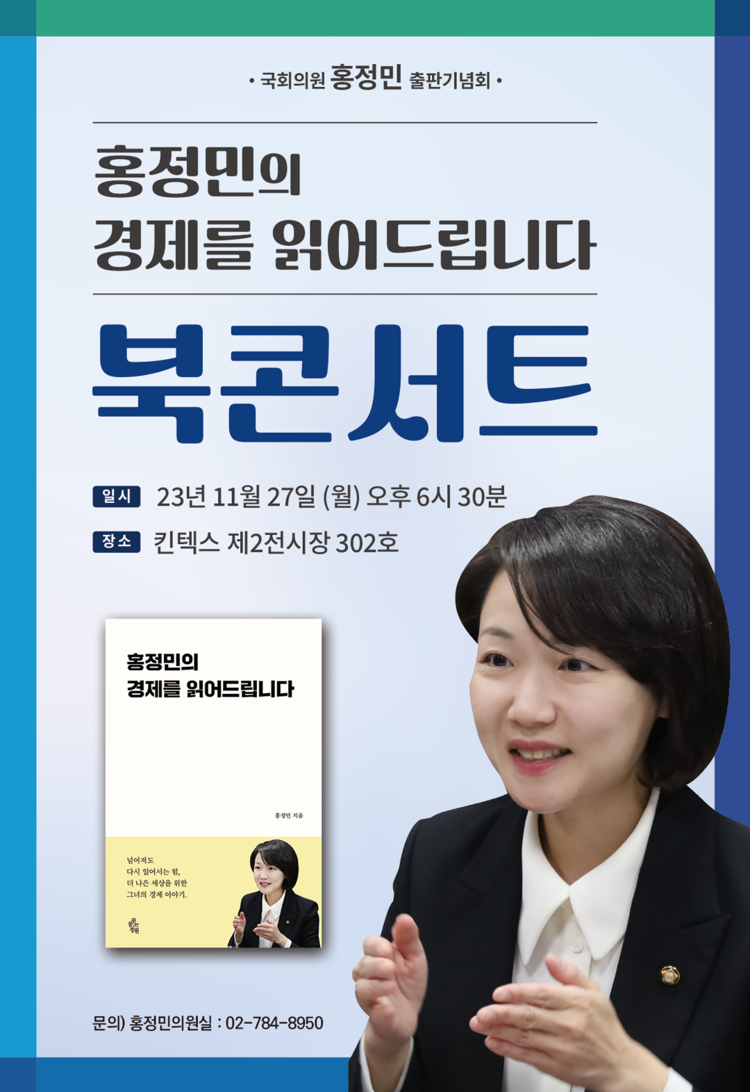 [부자동네타임즈 = 김인수 기자] 더불어민주당 홍정민 국회의원(경기 고양병)은 오는 27일 오후 6시 30분 일산 킨텍스 제2전시장 301호, 302호에서 <홍정민의 경제를 읽어드립니다> 북콘서트를 연다.