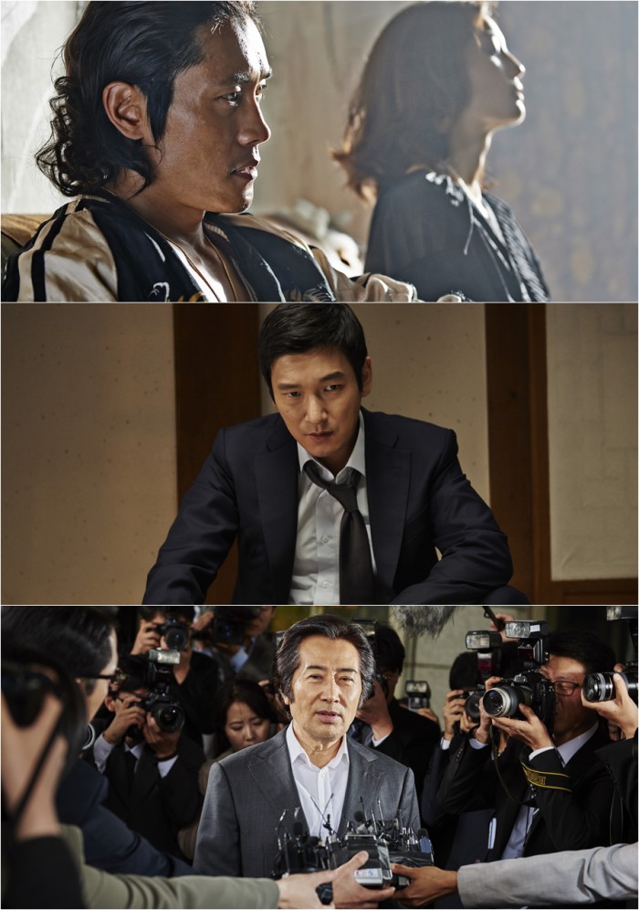 △ 배우 이병헌, 조승우, 백윤식(상단부터) 영화 '내부자들'에서 열연하는 모습. <사진제공=쇼박스>