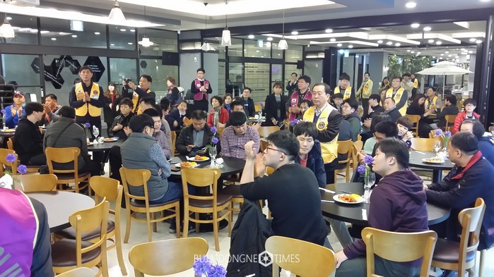 | △국제라인온스협회 B1(광주지구)는 3월 29일 광주시 수완동 한 식당에서 광주광역시라인온스협회 5개 지구가 협찬한 가운데 광주시 장애인협회원 및 장애인 문화협회 장애우들을 초청하여 '사랑의 자장면·탕수육 나눔 봉사'를 실시하였다 |