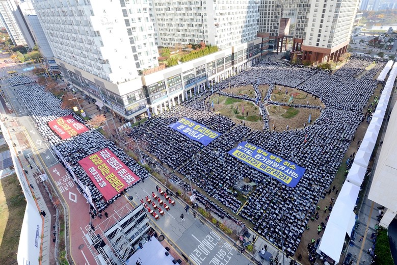 신천지예수교 증거장막성전(이하 신천지예수교회)가 15일 정오 경기도 수원시 영통구 경기도청 앞에서 수만 명이 모여 ‘편파적인 종교탄압 규탄 결의대회’를 연 가운데 이기원 신천지예수교회 총무가 이같이 말했다.