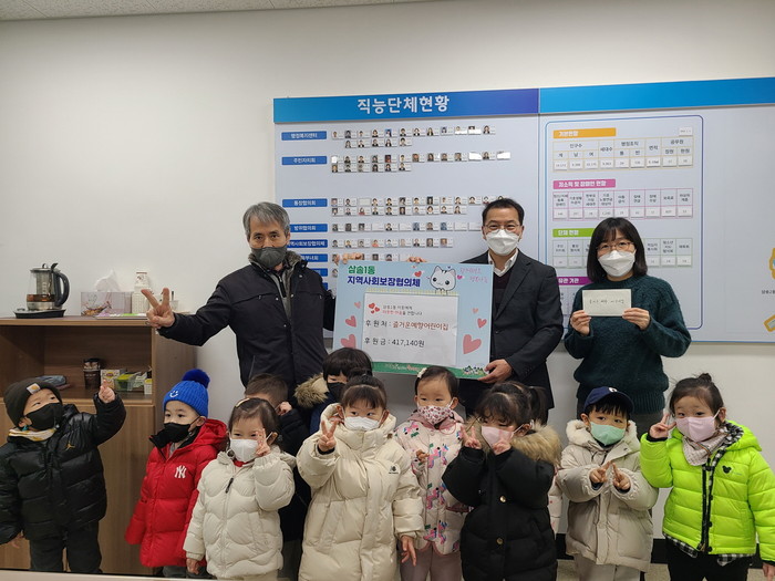 이번 기부금은 아이들이 1년 동안 책을 읽으면 1페이지 당 10원이 모여 마련됐다. 올해에는 417,140원의 기부금이 모여 10여 명의 아이들이 함께 삼송1동 행정복지센터를 방문해 전달했다.