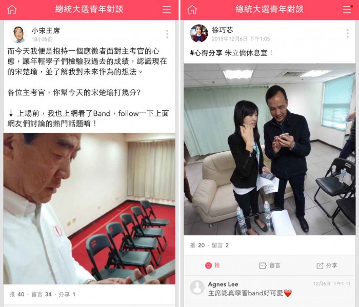| △ 대만 '대통령선거 청년포럼' 밴드 사용 모습. <사진제공=캠프모바일> |