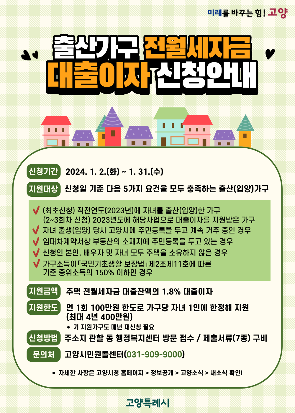 고양특례시, 출산가구에 전월세자금 대출이자 지원.