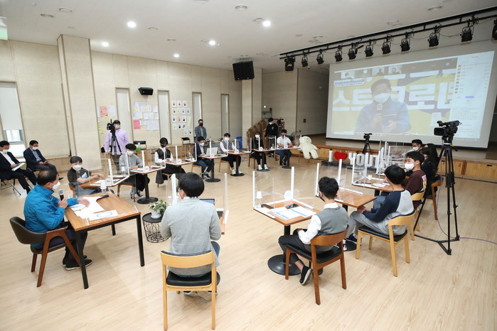 사회를 맡은 청소년을 주축으로 청소년들이 주도적으로 현장 분위기를 이끌면서 이재준 시장과의 자유토론을 펼쳐나갔다. 코로나19 예방방침에 따라 현장에는 최소 인원만이 참석했으나 고양시 유튜브 채널과 화상어플을 통해 40여명의 청소년들이 실시간으로 참여해 꽉 찬 열기를 이어갔다.