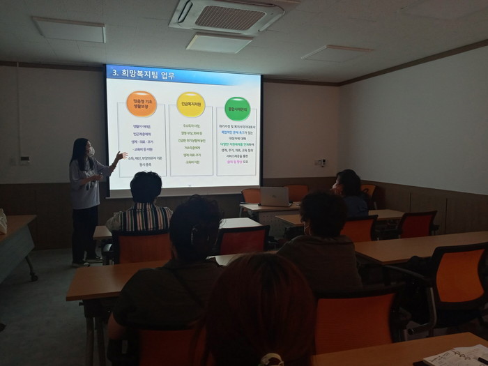 이웃돌봄 복지현장 교육은 우리 주변에서 경제적으로 생활이 어려움에도 혜택을 받지 못하고 있는 숨어있는 위기가구를 신속하고 효과적으로 발굴하여 지원하기 위한 교육으로 위기가구 지원 대상, 발굴 방법, 신고 요령 등의 내용으로 실시됐다.