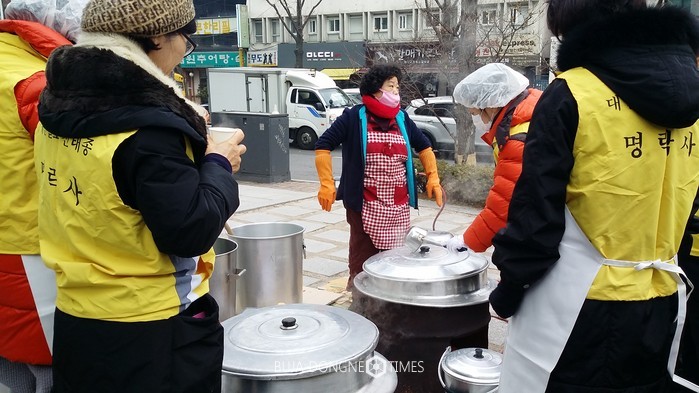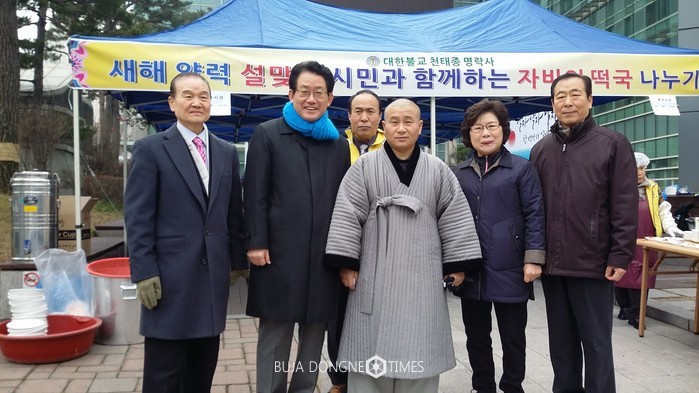 천태종 불자님중 보살님 처사님들이 설맞이 나눔행사에 봉사참여 했다.