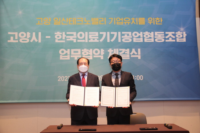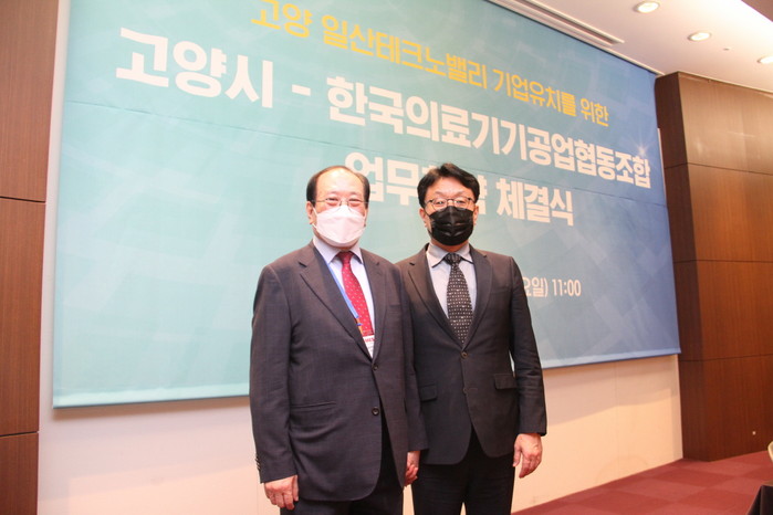 [부자동네타임즈 김인수기자] 고양시가 일산테크노밸리의 성공적 추진을 위해 ‘한국의료기기공업협동조합(이사장 이재화)과 업무협약’을 체결했다.