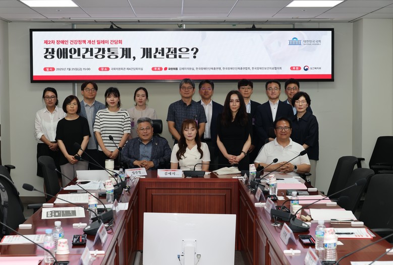 오늘, 국회 보건복지위원회 김예지 의원( 국민의힘, 비례대표 )은 7월 25일(금)국회의원회관 제4간담회의실에서『 제2차 장애인 건강정책 개선 릴레이 간담회 – 장애인건강통계, 개선점은? 』를 개최했다. 이번 간담회는 장애인의 건강권 보장을 위한 실질적인 정책 기반 마련을 목적으로, 건강 관련 국가통계에 장애인 조사항목을 보다 폭넓게 반영할 수 있는 방안을 모색하기 위해 마련됐다.
