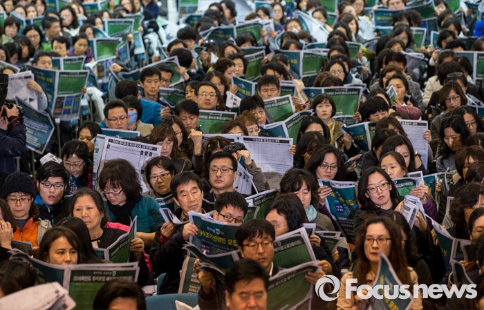(서울=포커스뉴스) 13일 오후 서울 서대문구 이화여자대학교에서 열린 '종로학원, 2016 수능 가채점 긴급분석 설명회'에 참석한 수험생, 학부모 및 관계자들이 배치참고표를 살펴보고 있다.