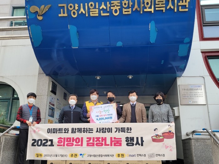 이번 행사는 이마트 킨텍스점(점장 이유현), 트레이더스 킨텍스점(점장 김봉철)의 후원(800만원)을 받아 관내 취약계층 241가정에 김장김치(10kg)를 전달했다.