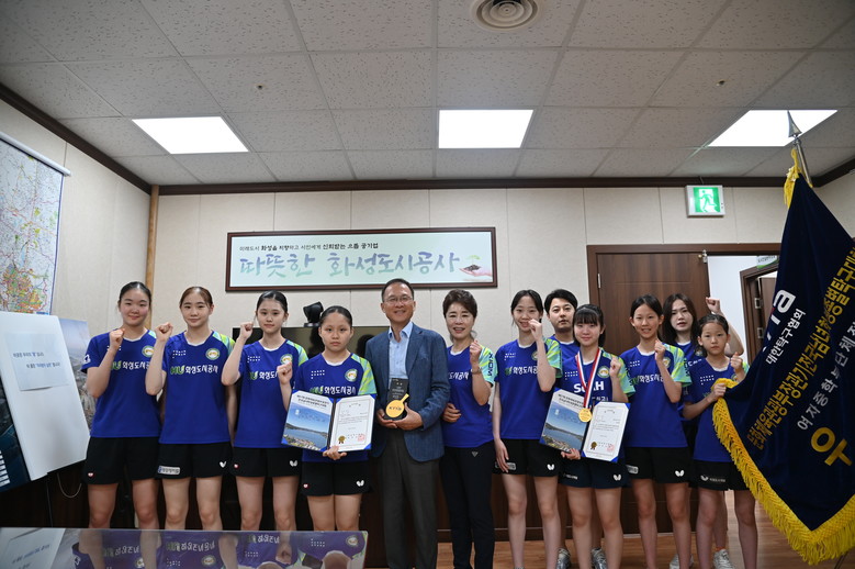 화성도시공사(사장 김근영, 이하 HU공사) 유소년탁구팀이 충남 논산시 건양대 짐나지움에서 열린 제57회 문화체육부장관기 전국 남녀 학생 종별탁구대회에서 창단 첫 단체전 우승을 했다고 26일 밝혔다.