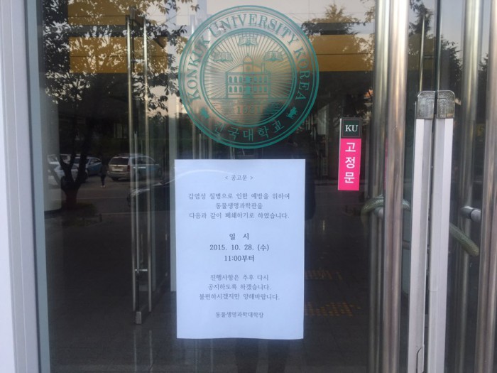 | △ 건물이 폐쇄된 건국대학교 동물생명과학대 모습 |