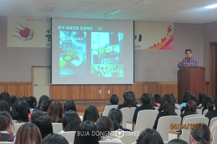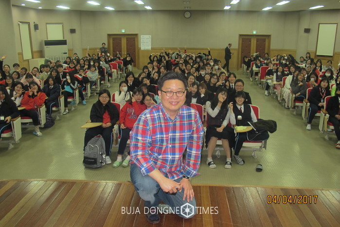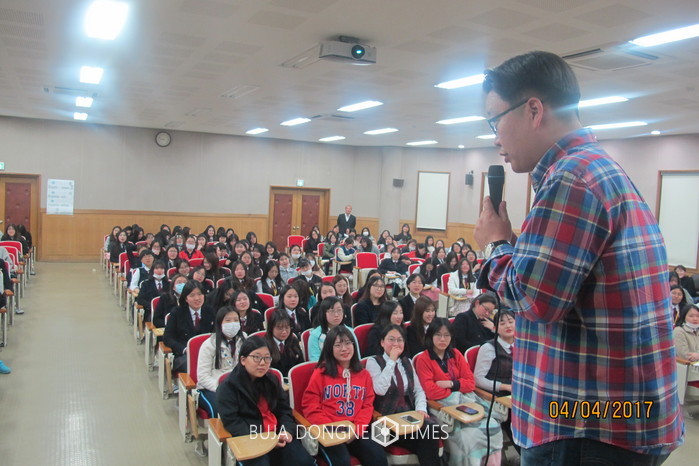 전남여자고등학교(교장 김덕중)가 4일 저녁 광주광역시교육연수원이 지원하는 '2017년 학교로 찾아가는 청소년 특강'을 실시했다. 특강엔 '한국 홍보 전문가' 서경덕 교수가 초청됐다. 서 교수는 '세계를 리드하는 대한민국'을 주제로 전남여고 학생들에게 꿈과 희망의 이야기를 들려줬다.