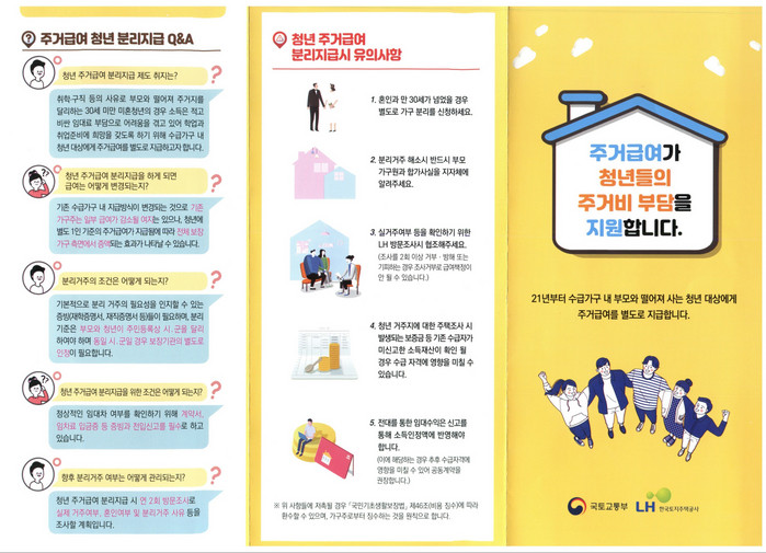 또한 자녀의 정상적인 임대차 여부를 확인하기 위한 임대차계약서와 전입신고 등 기본적인 요건을 갖춰야 주거급여 분리지급이 가능하다.