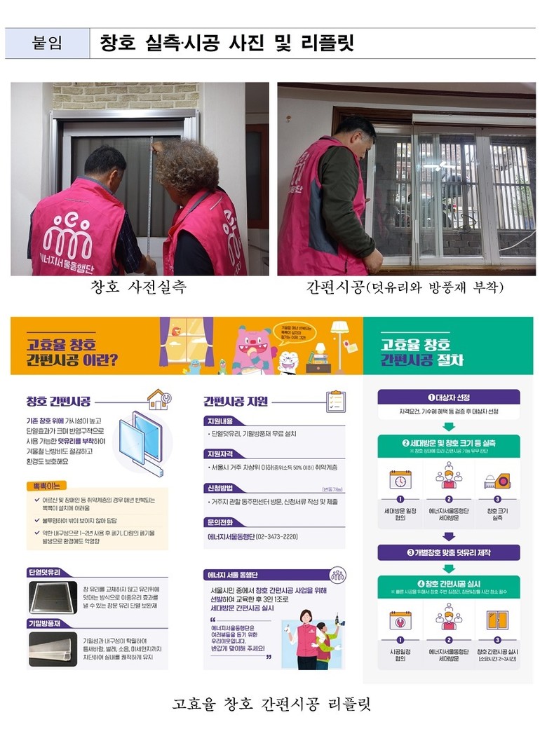 서울시, 취약계층 ‘창호 간편시공’ 무료 지원…난방비, 외풍 걱정 줄인다