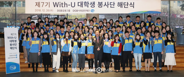 김태오 이사장은 “올 한해 DGB를 위해 그리고 지역 어려운 이웃들을 위해 20대의 소중한 시간을 내어준 우리 With-U대학생 봉사자들에게 무한한 고마움을 전한다”라고 말하면서 “앞으로도 DGB는 지역과 함께하는 다양한 활동들을 통해 꿈과 풍요로움을 지역과 함께하겠다”는 뜻을 밝혔다.