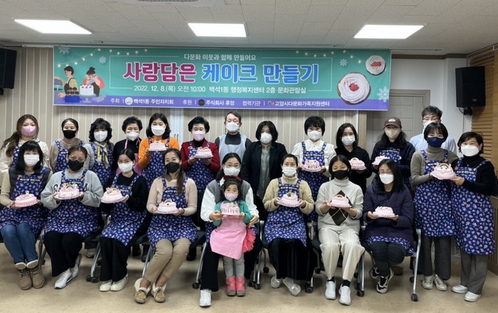 [부자동네타임즈 김인수기자] 고양특례시 일산동구 백석1동 주민자치회(회장 이석구)는 지난 8일 다문화 가족과 함께하는‘사랑담은 케이크 만들기’행사를 실시했다.