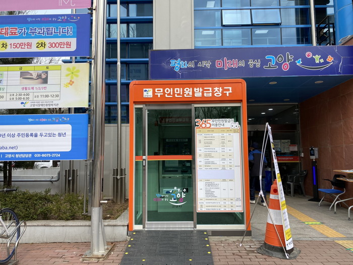 구는 코로나19로 인해 비대면 서류발급을 원하는 주민 수요가 늘어났으며 유동인구가 많은 백석역 인근의 행정수요를 충족하기 위하여, 백석2동 행정복지센터 1층 외부에 무인민원발급기를 새롭게 설치하였다.
