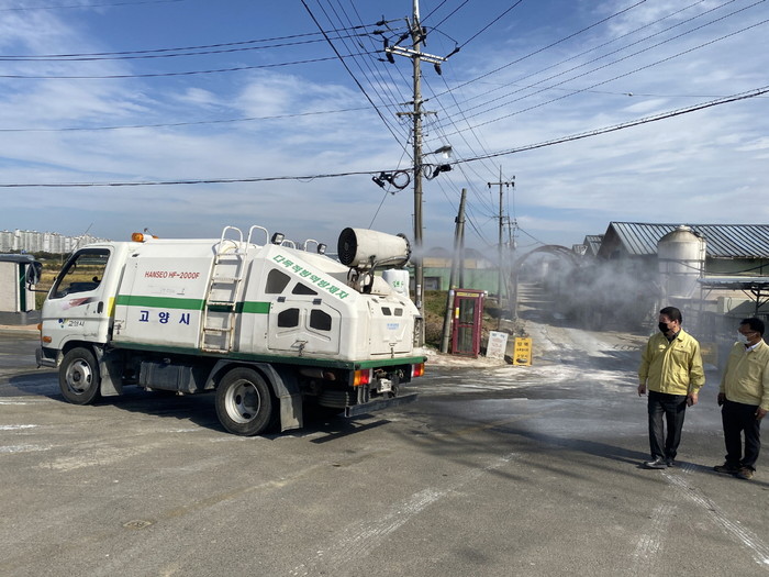 이 밖에도 군부대, 고양축산농협 등 유관기관과 유기적인 협업체계를 강화하고 가축방역차량 8대를 동원해 농장 외부 및 주변도로에 대한 소독활동을 적극적으로 추진하고 있다.