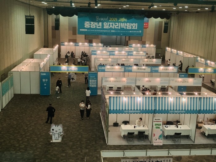 지난 10일에는 이력서 사전접수자에 한해 킨텍스 제2전시장에서 현장면접과 채용상담을 진행했다. 고양시 및 인근지역 우수기업 32개사에서 사무직, 영업직, 생산직, 물류직 등 중장년 인재를 채용하기 위해 모였다.