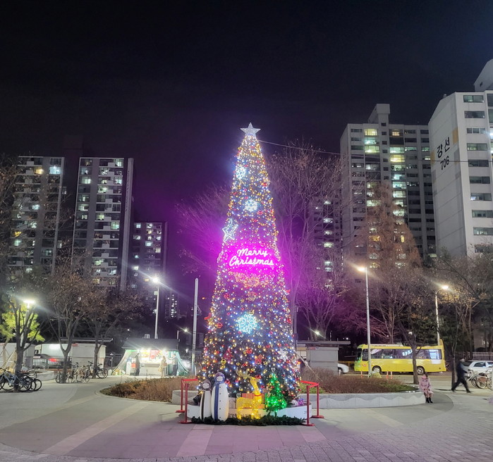 [부자동네타임즈 김인수기자] 지난 8일 오후, 주엽역광장에서 약 8m 높이의 성탄 트리 점등행사가 열렸으며, 크리스마스 트리는 오는 1월 중순까지 매일 18시~24시 광장을 환하게 밝힐 예정이다.