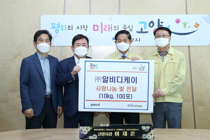 전달식에는 이재준 고양시장과 ㈜알비디케이 김광선회장, 이춘표 제2부시장, 고양시 사회복지협의회 이창원회장이 함께했다.