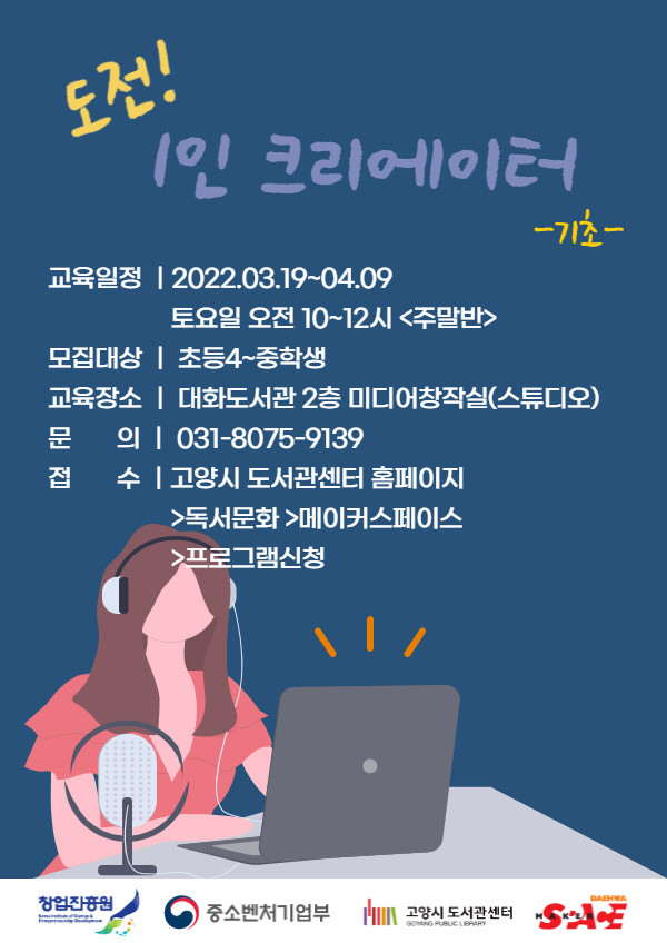[부자동네타임즈 김인수기자] 고양시 대화도서관이 청소년을 대상으로 미디어 크리에이터 양성과정 ‘도전! 나도 청소년 크리에이터’ 프로그램을 운영한다.