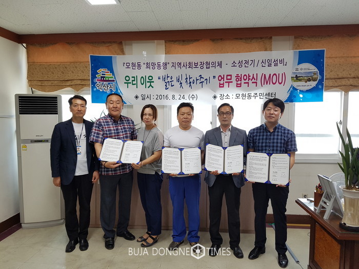 이날 이들은 ‘우리이웃 밝은 빛 찾아주기’ 재능기부 협약(MOU)을 체결하고 모현동 복지사각지대에 있는 어려운 가정을 발굴하여 신속한 복지서비스를 제공할 것을 약속했다.