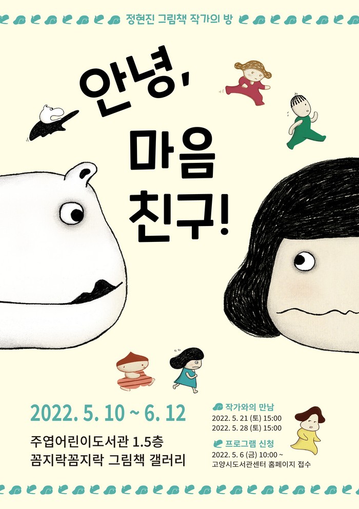 [부자동네타임즈 김인수기자] 세계그림책 특성화 도서관인 고양시 주엽어린이도서관이 오는 5월 10일부터 6월 12일까지 꼼지락꼼지락 그림책 갤러리에서 정현진 작가의 방 전시회를 개최한다.