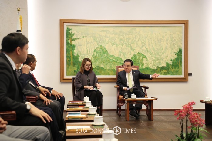 [부자동네타임즈 조영재 기자]문희상 국회의장은 10월 29일(월) 오후 의장접견실에서 방산협력 논의를 위해 방한한 압둘 카리스 알마샤리(Abdul Kharis Almasyari) 인도네시아 하원 제1위원회 위원장(외교.국방.정보)을 만났다.