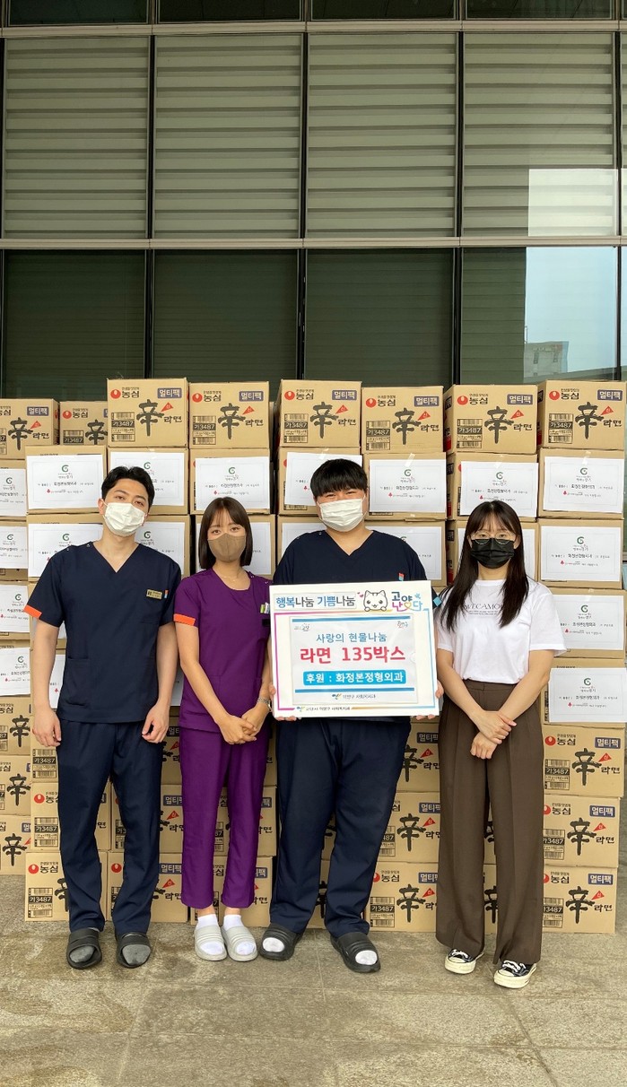 [부자동네타임즈 김인수기자] 고양시 덕양구(구청장 이영주)는 지난 15일, 화정본정형외과(대표 백승욱)가 관내 취약계층을 위해 라면 135박스를 기부했다고 밝혔다.