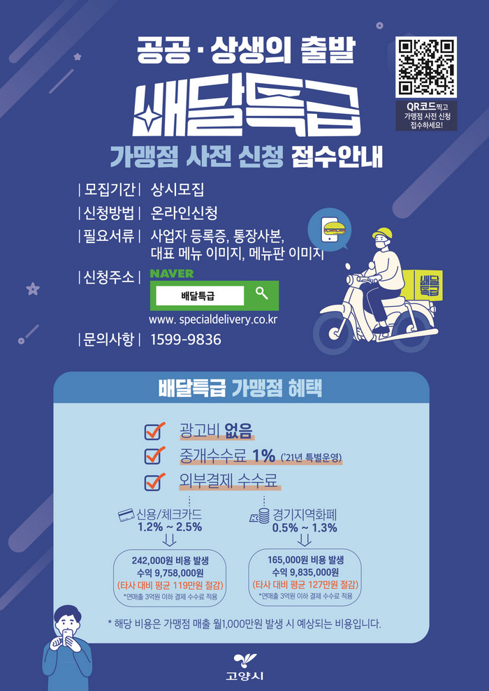 [부자동네타임즈 김인수기자] 고양시가 경기도 공공배달앱 ‘배달특급’의 본격 시작을 앞두고 오는 5월 31일까지 가맹점을 모집한다.