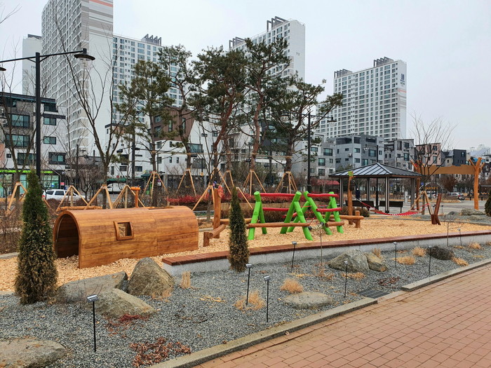 [부자동네타임즈 김인수기자] 고양시가 덕양구 도내동 일원 도래울마을 바람물공원에 조성한 어린이 숲놀이터가 2월 초 개장을 앞두고 있다. 숲놀이터에는 지역 아동의 선호도를 반영한 놀이기구와 야생 초화원 등이 조성됐다.