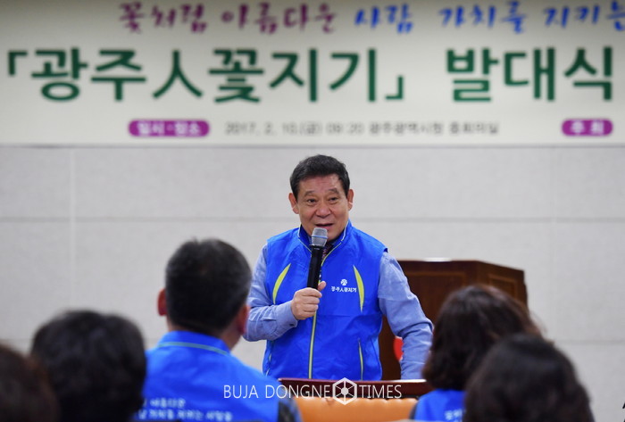 윤장현 광주시장은 "사람 때문에 상처받고 권력ㅇ로부터 폭력 당하기도 하지만 위로도 사람에게 받고 치유하는 것도 사람이다."며 "광주인人꽃지기 여러분들의 맑은 향기와 따뜻한 온기가 광주를 사람 맛 나는 세상으로 만들 것으로 확신한다."고 말했다.
