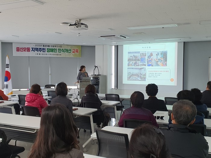 중산2동장은“이번 교육에 참여하신 여러분이 장애인에 대한 이해와 배려의 마음을 나누는 씨앗이 돼서 가족과 이웃에 전달되길 바란다. 더 이상 장애가 장애가 되지 않고 모두가 행복한 중산2동이 되도록 노력하겠다.”고 전했다.