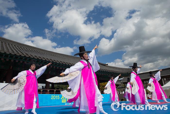 (서울=포커스뉴스) 제19회 노인의 날을 맞은 2일 오후 서울 중구 퇴계로 남산골 한옥마을에서 열린 '2015 실버문화 페스티벌'에 참가한 어르신들이 공연을 펼치고 있다.